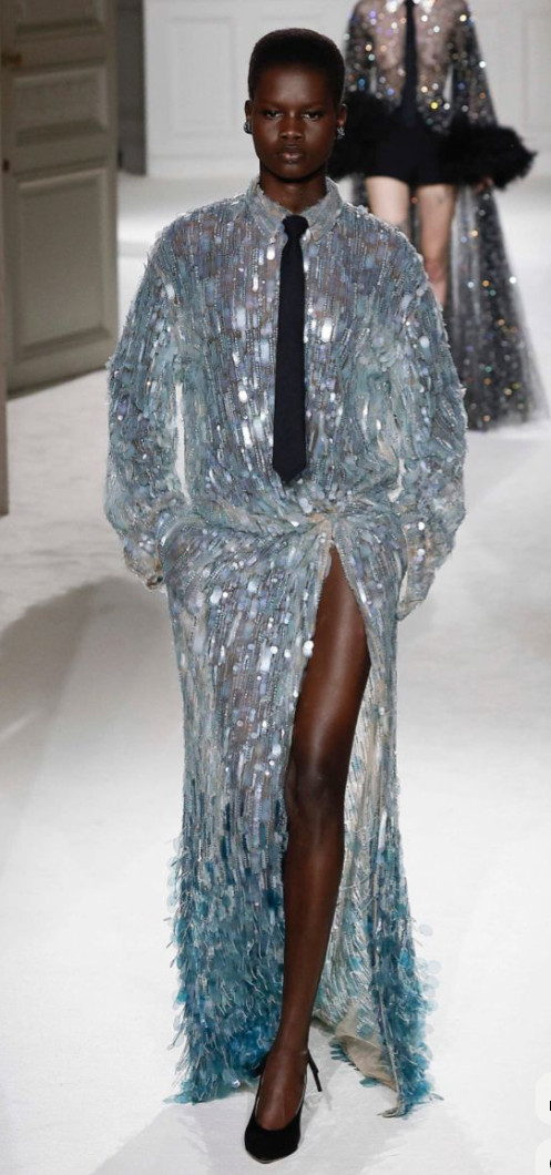 Velvet, long gloves, rich fabrics, theatrical shapes. Dressing up becomes intentional again. Luxury is expressive, not quiet.