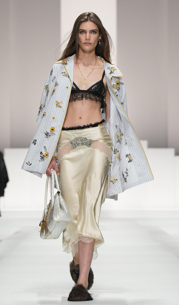 Recent Dolce & Gabbana runway shows highlighted this shift-lace layered with tailoring, corsetry, and bold styling.