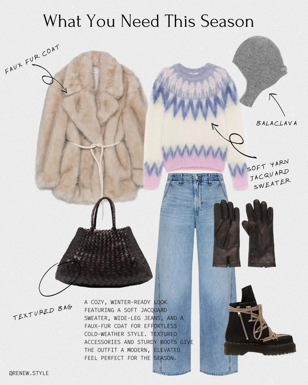 This combination proves that faux fur doesn't have to feel “dressy.” It can be part of a cool, comfortable, everyday winter uniform.